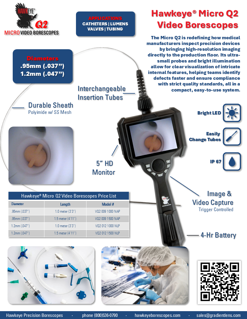 Borescopes are essential during both the assembly and post-assembly phases of medical device production. They facilitate detailed inspections of crucial components like catheters, endoscopes, and surgical instruments, ensuring they meet exact specifications and are free from imperfections that might affect functionality or sterility. Additionally, borescopes help verify the integrity of seals, welds, and bonding processes, vital for maintaining sterile conditions in medical settings. By providing clear, high-resolution images and videos of internal surfaces, borescopes enable manufacturers to identify and address potential issues early in production, enhancing product reliability and reducing the risk of recalls or compliance issues.