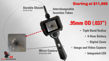 Hawkeye® Pro MicroSlim Borescopes are just .073 inches in diameter, or .084 inches with a mirror tube. Use them to inspect diesel fuel-injection nozzles miniature hydraulic components and much more.