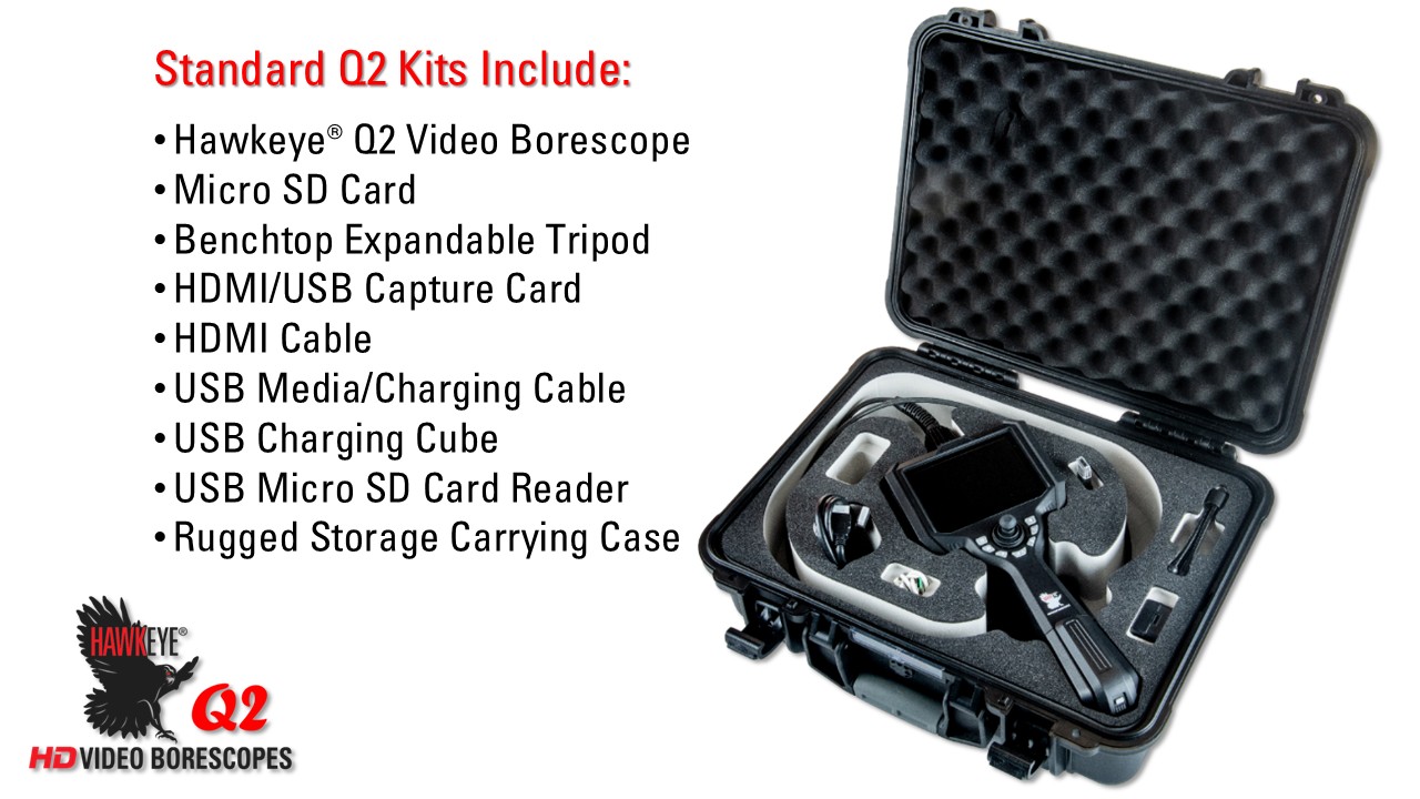 Building on the proven performance of the Hawkeye V2, V3, and Q2 models, the Micro Q2 integrates the latest video borescope technology. It captures crisp images and video with a four-hour battery life to support extended inspections. The lightweight, portable design makes it easy to maneuver, while its versatility helps users meet multiple inspection needs without investing in separate systems.